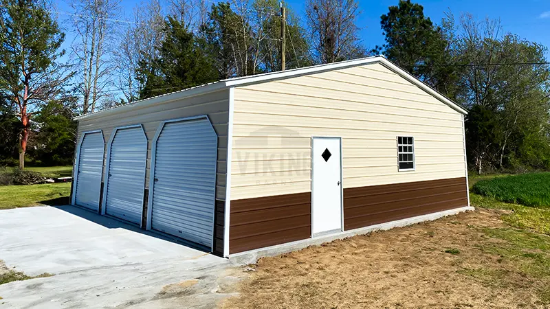 24'X35'X9' Vertical Style Three Car Garage is the right investment that you can make to get wide space for parking, storage, or other customized needs. This 24x35 Metal Garage is one of those structures that best fits your custom needs. It has the potential to serve your moderate requirements. This 24x35x9 Three Car Metal Garage is a multi-color metal garage that looks amazing with Wainscoting.